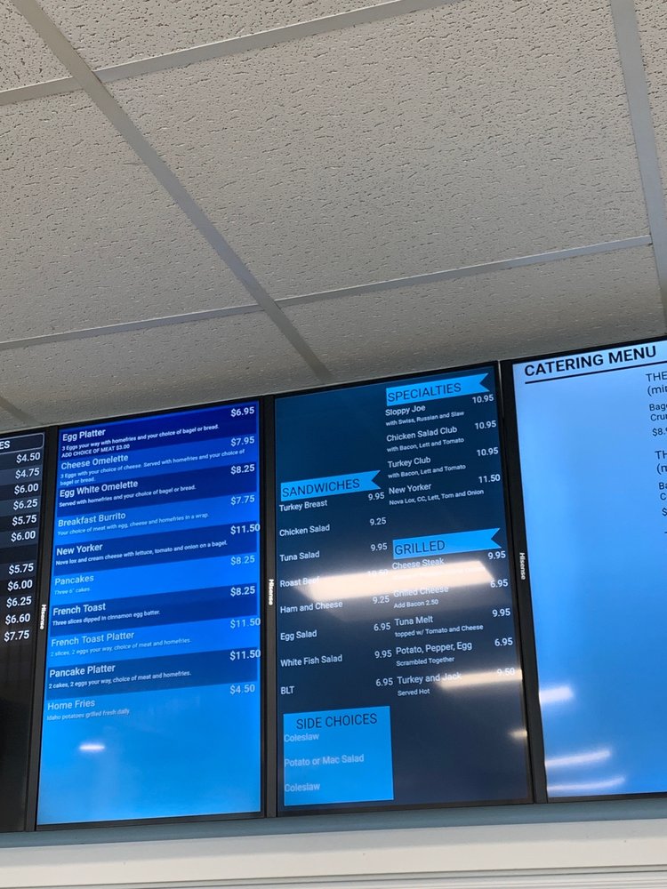 Sliced Nova Lox served with cream cheese on your choice of bagel. Add lettuce, tomato, onions or capers if like.